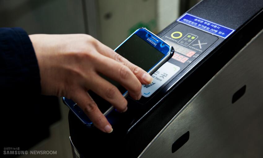 많은 분이 개찰구 앞에서 휴대폰 화면을 켜거나 지문 인식을 시도하시는데, 삼성페이 교통카드는 그럴 필요가 없습니다.